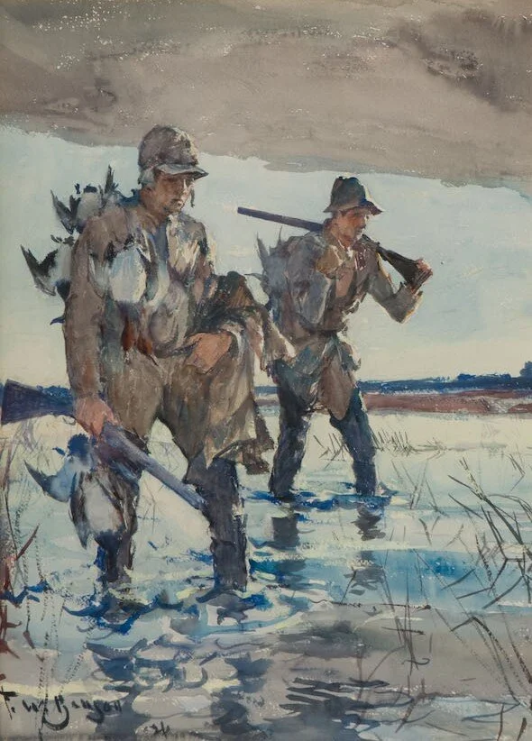 Copley’s fifth annual summer auction was a huge success realizing over $4.2 million in sales. The much-anticipated collection of five oil paintings by Carl Rungius (1869-1959) out of the collection of H. Wendell Endicott headlined the record-breaking sale. These museum-quality works saw active participation in the room and on the overflowing phone banks, which brought outstanding results. Humpback Grizzly led the charge, realizing an auction-high sale price of $460,000 on an estimate of $300,000/500,000 (see image on right). The top decoy in the sale was a Preening Black Duck by Gus Wilson (1864-1950) of South Portland, Maine, circa 1895, that sold for $105,000.